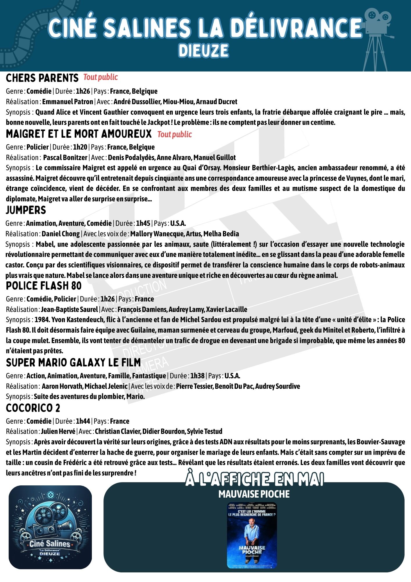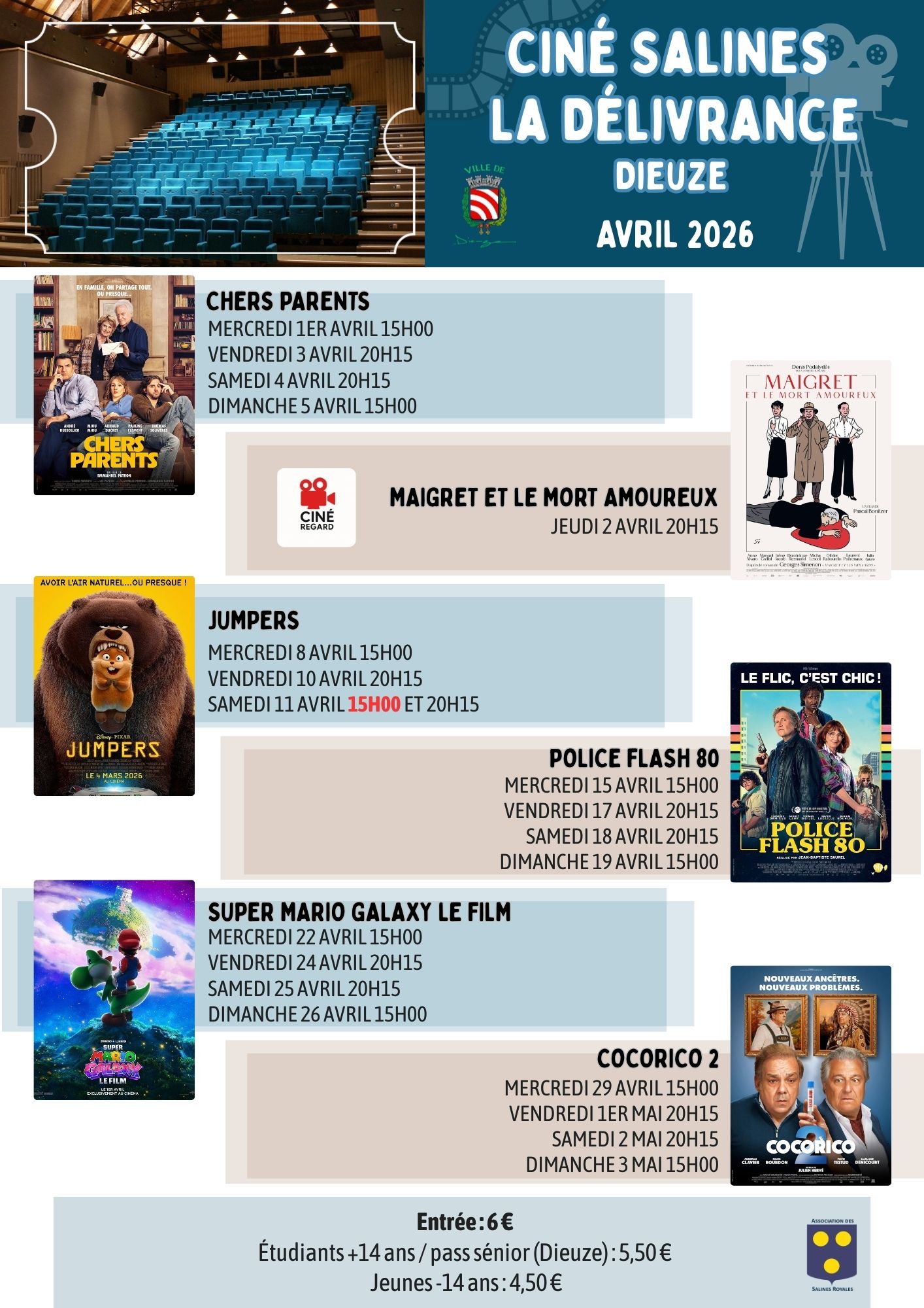 Une programmation hebdomadaire de films à l’affiche est proposée avec un équipement de projection numérique. Nous vous y attendons nombreux.