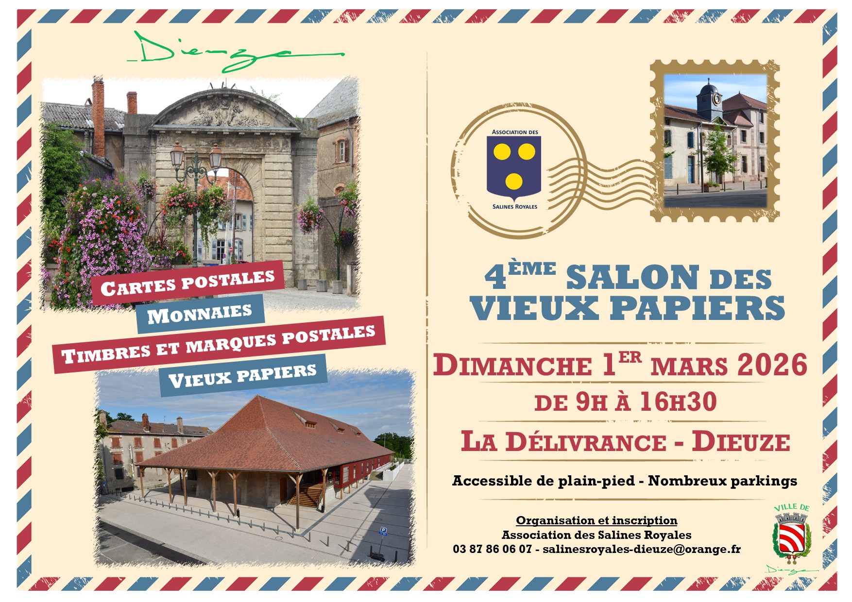Les inscriptions pour les exposants pour le 4ème Salon des Vieux Papiers de Dieuze, qui aura lieu dimanche 1 mars 2026 de 9h à 16h30 à la Délivrance, sont ouvertes ! Vous trouverez ci-dessous les documents nécessaires à l’inscription, possible jusqu’au vendredi 20 février 2026 au plus tard.